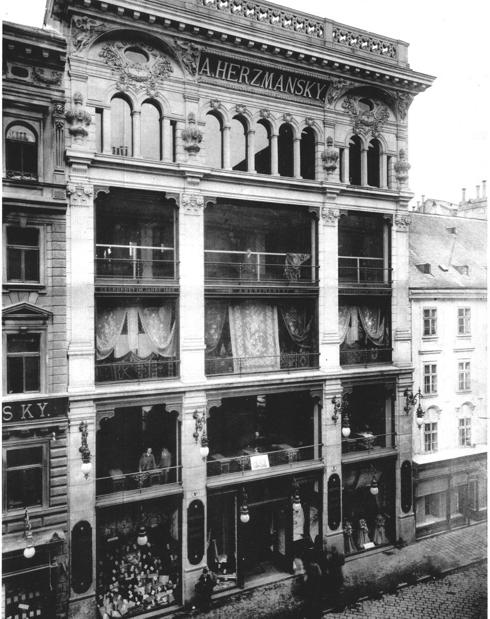 Dieses späthistoristische Zinshaus wurde von den Architekten Fellner & Helmer entworfen und verfolgt die Formen der Hochrenaissance. Gebaut wurde das vierstöckige Gebäude mit palaisartiger Fassade 1895 unter Leitung Alois Schumachers. Es diente als Geschäfts- und Wohnsitz für die Gebrüder Bergmann, Industrielle aus Lüdenscheid in Westfalen. Durch aufwändige technische Ausstattung, wie etwa eine Zentralheizung, die sogar das Stiegenhaus versorgte, wurde eine überaus hohe Wohnqualität erzielt. Die wohlorganisierte Einfahrt ermöglichte es, überdacht aus der Kutsche ins Haus zu gelangen. Überaus gefällige Leuchtkörper aus Messing und Rauchglas sowie reiche Buntglasscheiben sorgten für eine gediegene Atmosphäre; ebenso wie eine nahezu lebensgroße Holzplastik der Bergnymphe Daphne, die neben den gekreuzten Hämmern und dem Schriftzug „Glück auf“ Symbol für das Betätigungsfeld der Familie war. Vorerst fehlte lediglich ein Aufzug, der aber nur kurz später nachgerüstet wurde und sich noch heute in weitgehend originalem Zustand präsentiert. Die Kegelbahn im Kellergeschoß sorgte für Unterhaltung.
