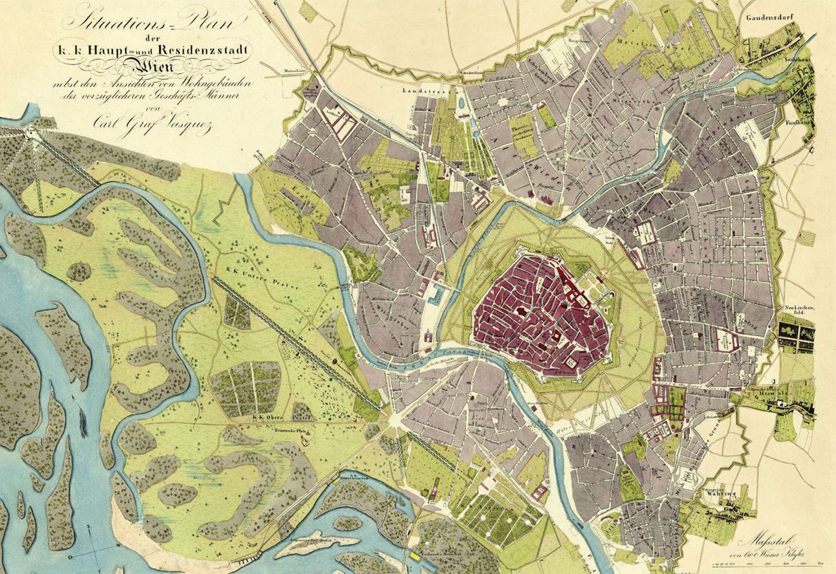1850 - 1861 1. Stadterweiterung vom Glacis (heute Ring) bis zum Linienwall (heute Gürtel)